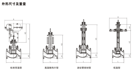 | 系列類型 | 常溫型、中溫型、低溫型。波紋管密封型、夾套保溫型、調節切斷型 | ||||||||||||||||||||||