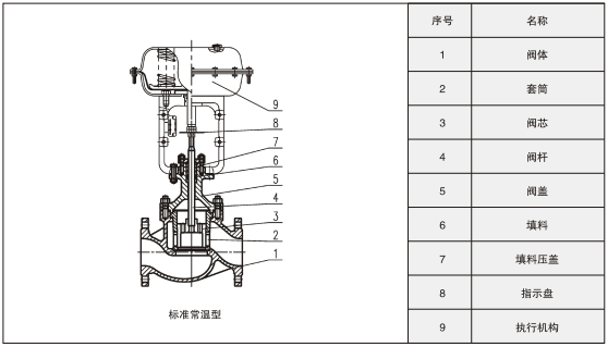 | 序號 | 項目 | 標準型調整閥 | 高溫、低溫型調節閥 | ||||