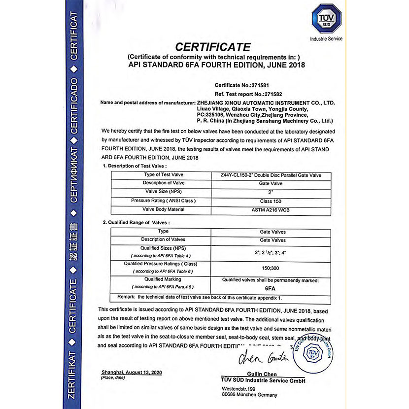 閘閥防火證書(shū) 6