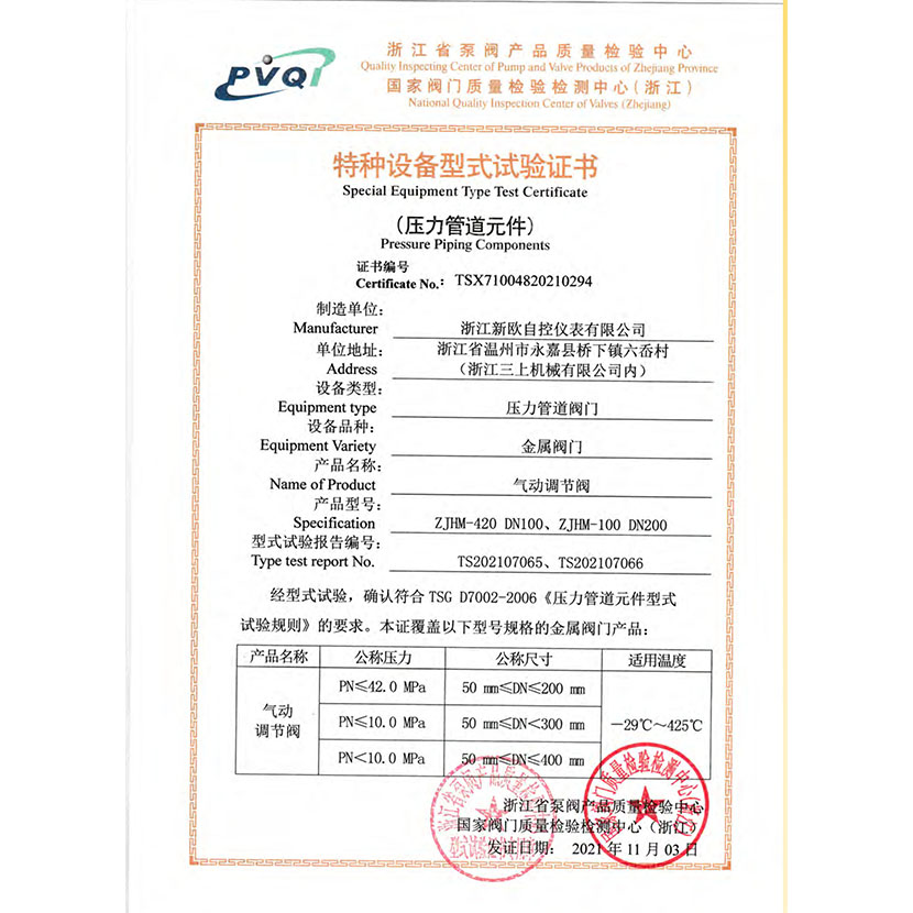 氣動調節閥 型式試驗報告